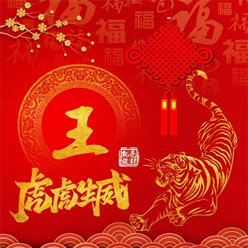 百家姓氏头像壁纸 2022喜庆新年虎年虎虎生威红色红红火火百福头像
