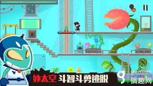 上去之后点击左边的滑轮放下救生艇,多点击几次滑轮,等救生艇下降到如下图所示的时候,点击小黑跳上救生艇成功逃跑。于是第一关就顺利结束了。