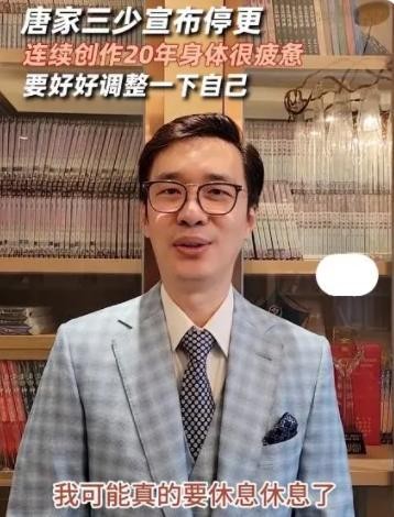 日前,网文作家“唐家三少”在网络平台宣布停更,表示自己已连续创作20年,身体很疲惫,计划在《神印王座2》写完后休息休息,好好调整一下自己。据悉,此前“唐家三少”唯一一次的断更,是因为老婆木子的离世。