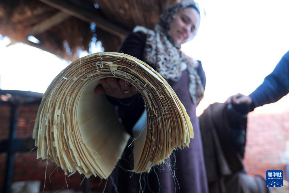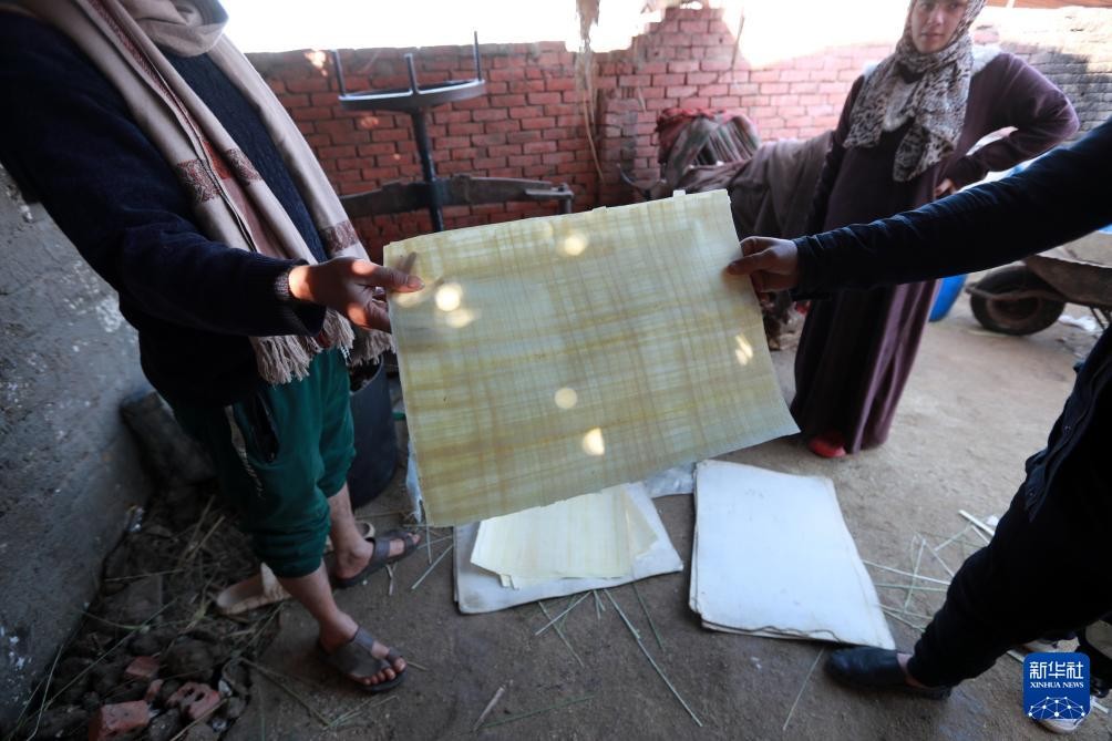 今年50岁的赛义德从事纸莎草纸的制作已有35年,从孩提时代,制纸便成为他生活的一部分。据他介绍,以前村里几乎家家户户制纸,村民以制纸为生,但因时局动荡、疫情及收入低等原因,很多人放弃了这门手艺。目前村里制纸的家庭仅剩不到20户。