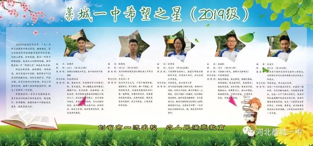 2020年疫情来势汹汹,挑战前所未有。一中师生在疫情中坚定信念,净化灵魂,努力实现疫情防控和教育教学的双丰收。为落实立德树人的根本任务,展示一中学子积极进取、奋发向上的精神风貌,树立典型,表彰先进,我校在高一、二年级开展了“藁城一中希望之星”评选表彰活动。