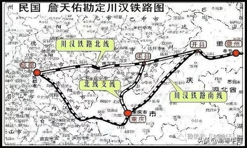 1915年11月,川汉铁路四川承建段复勘完竣。詹天佑综合考量沿线的人口经济、地质条件、工程造价等因素之后,最终比选定线:“成都-简州(简阳)-资阳-资州(资中)-内江-隆昌-荣昌-永川-江津-重庆-长寿-垫江-梁山(梁平)-开县-小江(云阳)-夔州(今奉节)-巫山-巴东-归州(秭归)-宜昌-河溶-建阳-杨家洚-皂市-应城-汉口”,这就是民国著名的詹天佑实勘“国有川汉铁路”。詹天佑民国铁路绕过万县,避开分水段大落差的恶劣地质,选择经开县、梁平、垫江达重庆。实际上,历史上的万县自古以来原本一直只是奉节夔州府管辖下的一个普通小城,此时尚未开埠,与当时长江南岸武陵山区的恩施少数民族小镇一样,都还名不见经传,无足轻重。