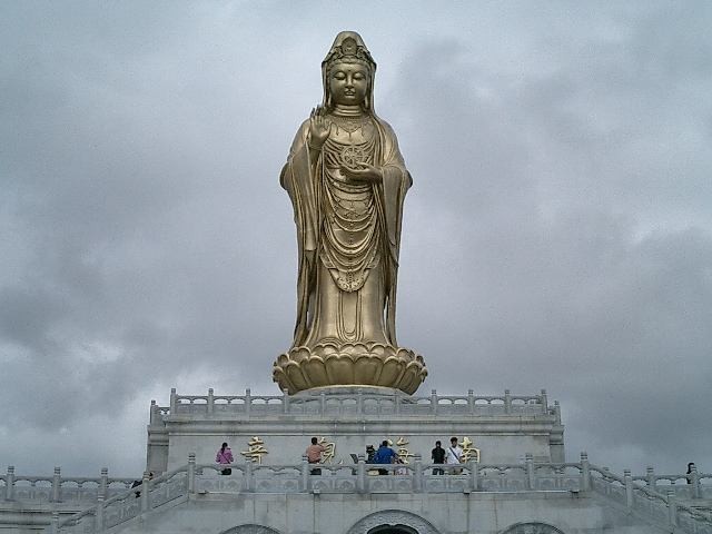 “普陀山这的台风每年有三到五个,自从有了观世音像以后,就没这种事了,而且他的手掌刚好对着台风来的方向,就把它挡回去了。”