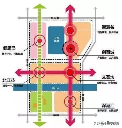 ③同样南北向的生态文明带,通过生态轴串联生态文创片区。