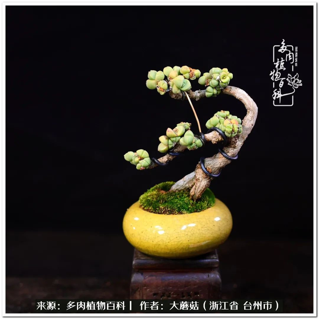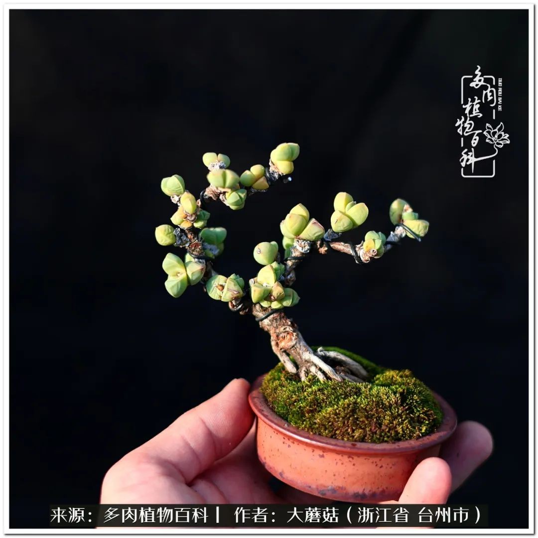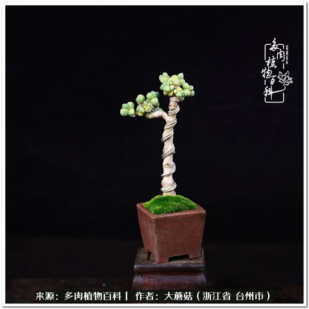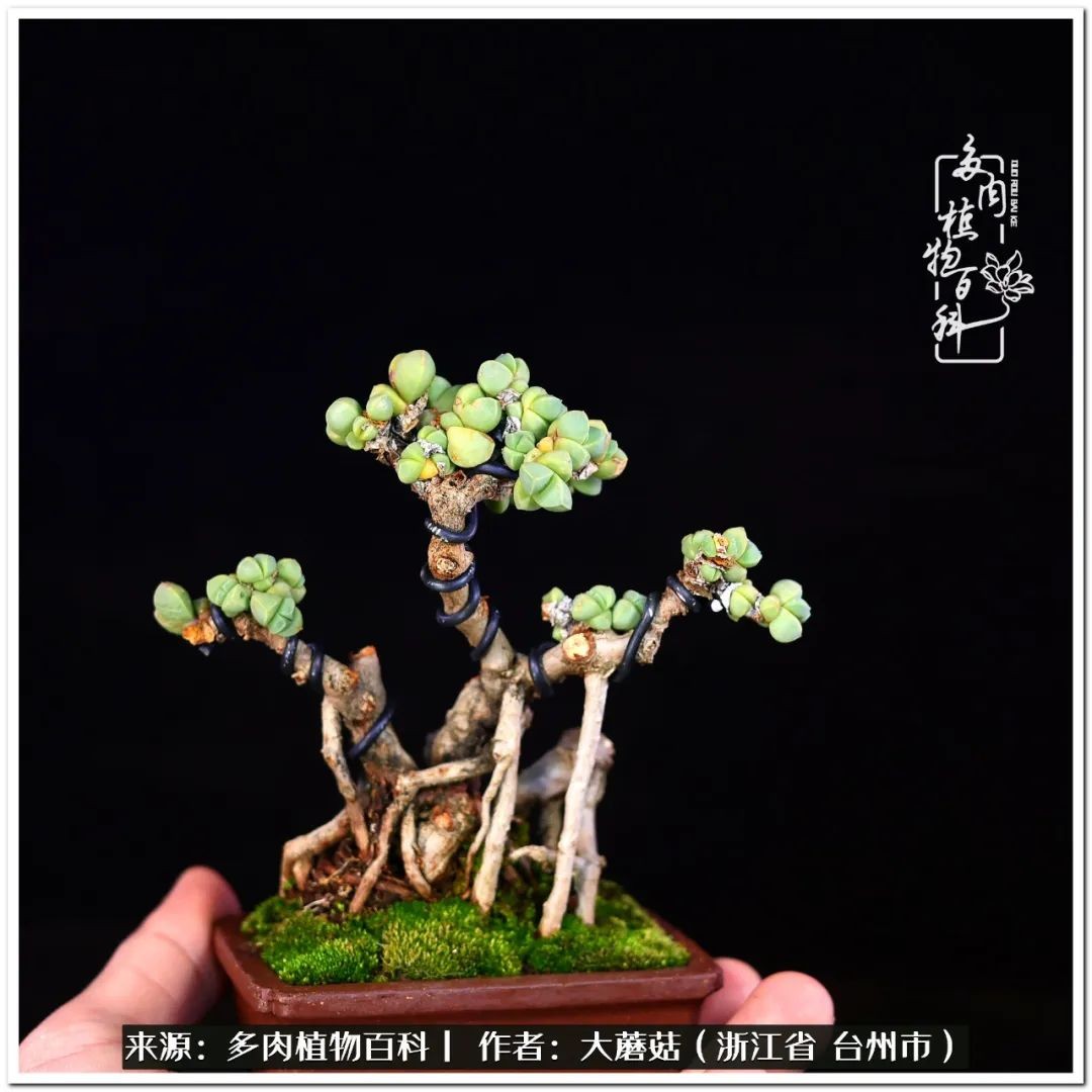 大蘑菇的鹿角海棠微盆景修剪及造型分享