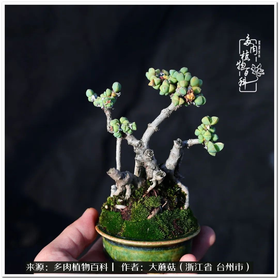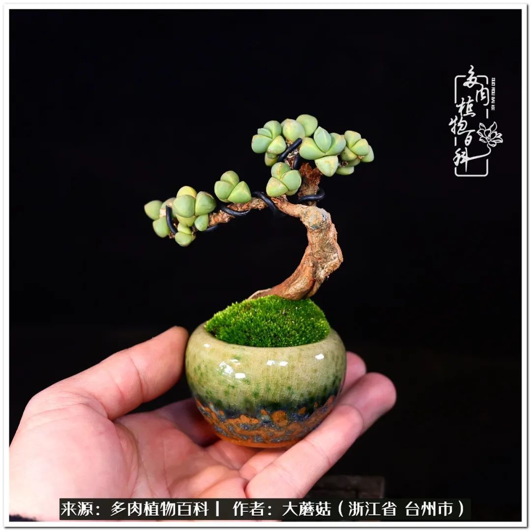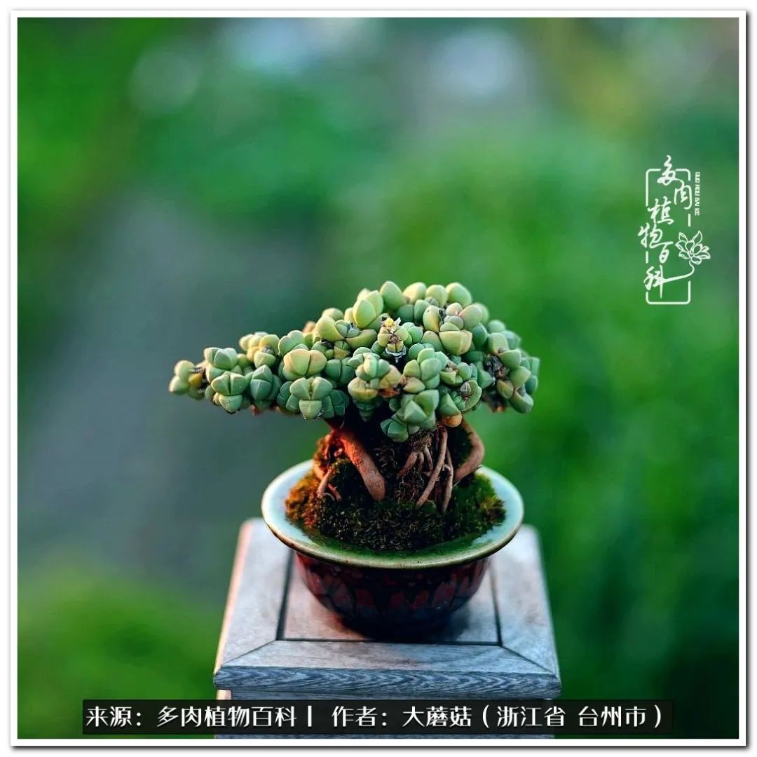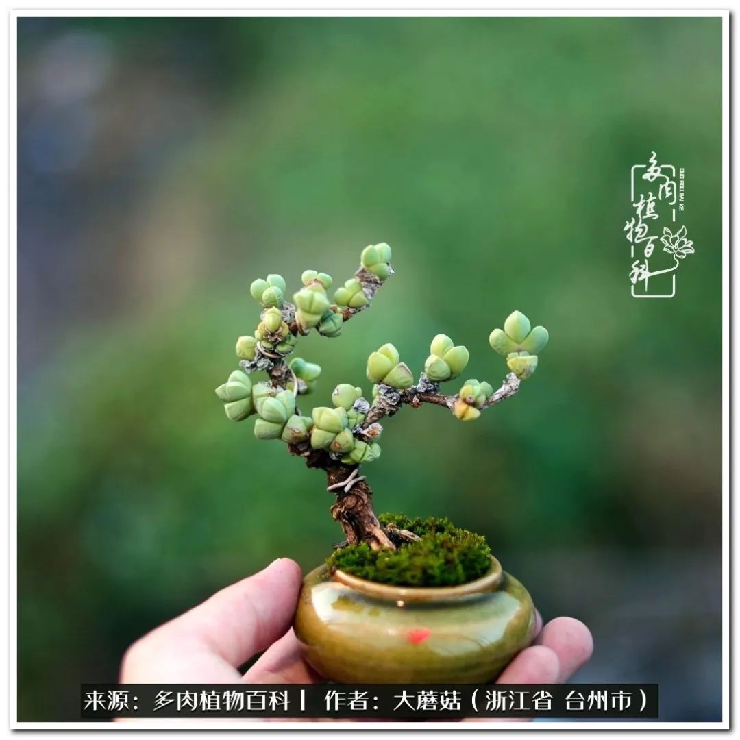大蘑菇的鹿角海棠微盆景修剪及造型分享