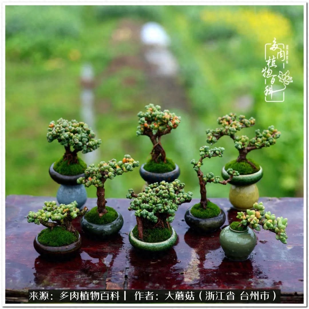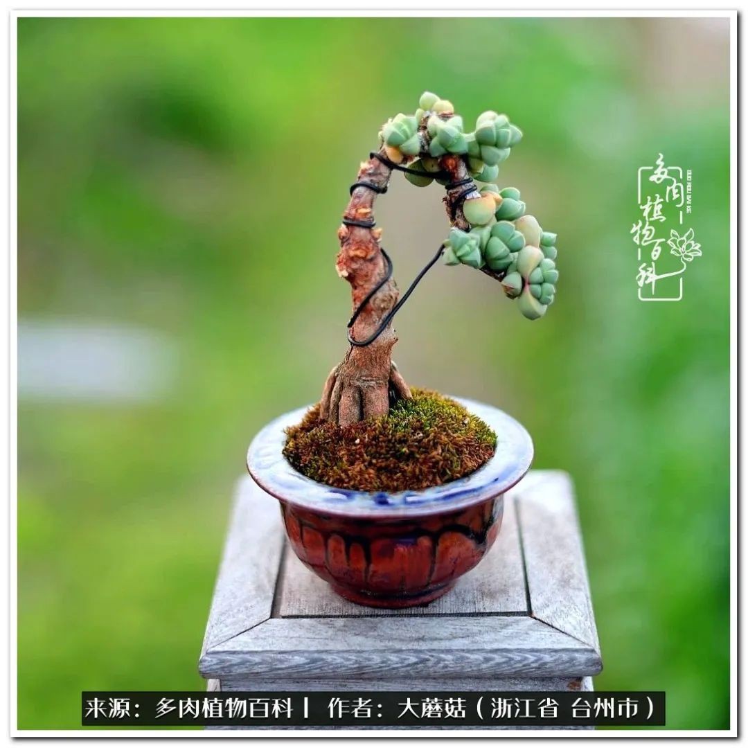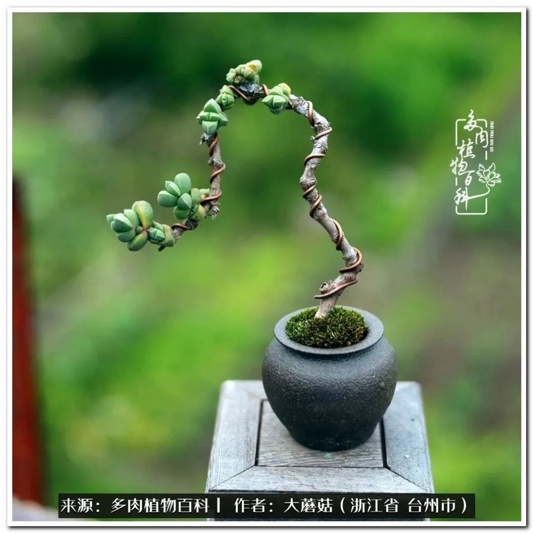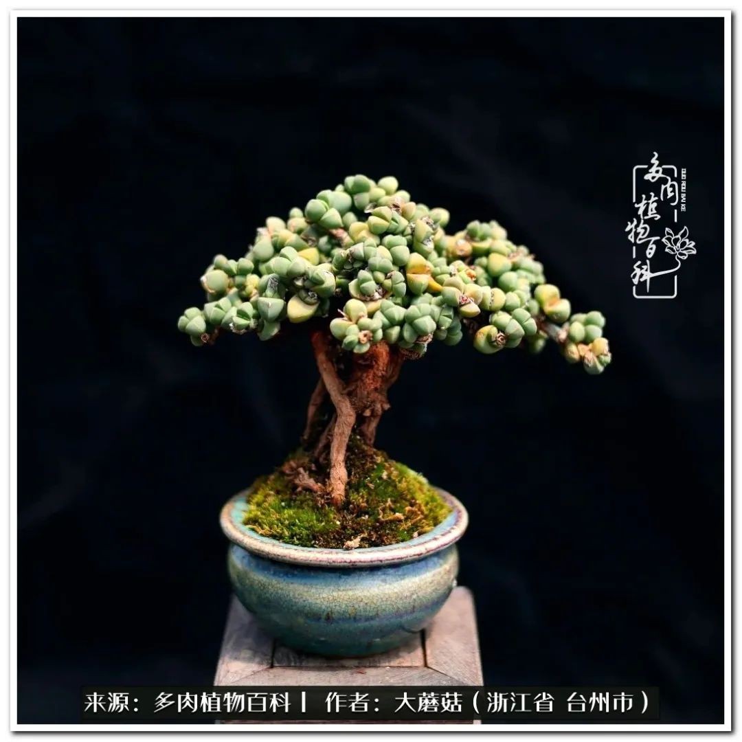 大蘑菇的鹿角海棠微盆景修剪及造型分享