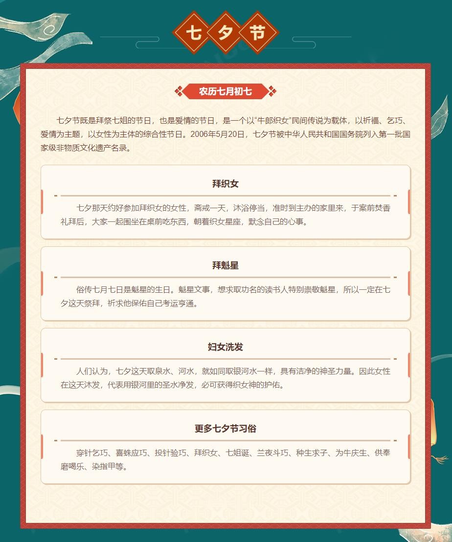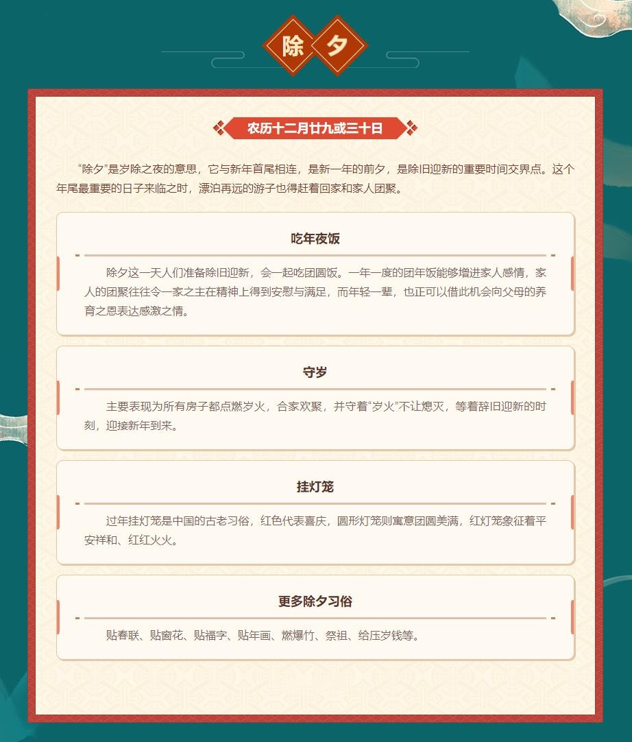 中国传统节日有哪些?传统节日主要有春节、中秋节、元宵节、端午节、清明节、元宵节、除夕、七夕节、二月二、中元节、重阳节、冬至、寒食节、腊八节等。接下来为大家介绍春节习俗、中秋节习俗、清明节习俗、七夕节习俗、端午节习俗、重阳节习俗等传统节日习俗,感兴趣的朋友一定不要错过哦!