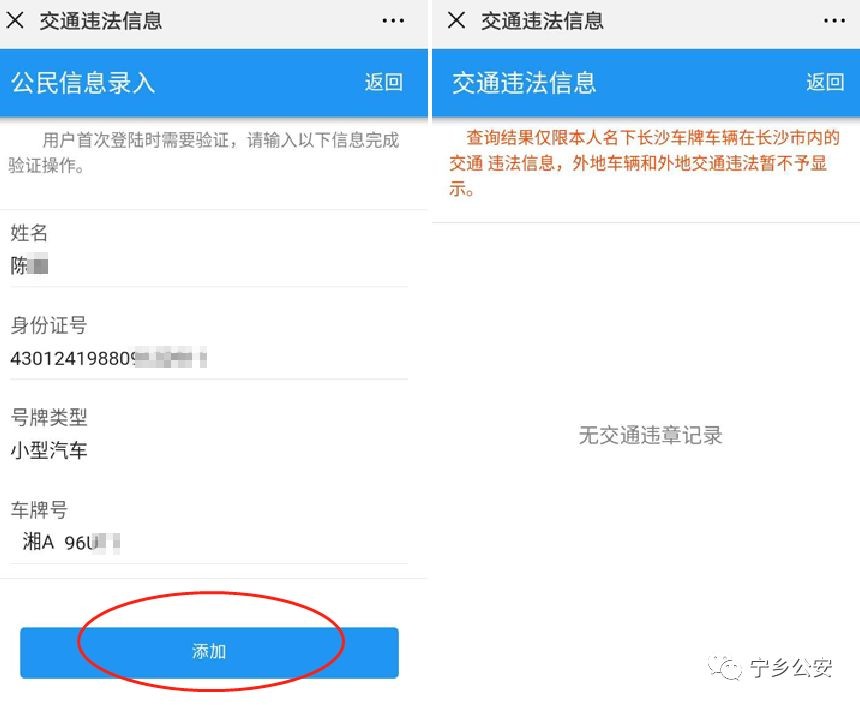 第四步:添加身份及车辆信息→查询