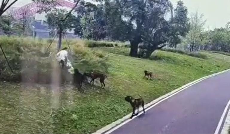 而且根据当地市民爆料,以前就见过,这几只狗不牵绳、不带嘴套,堂而皇之地奔跑在公园里。