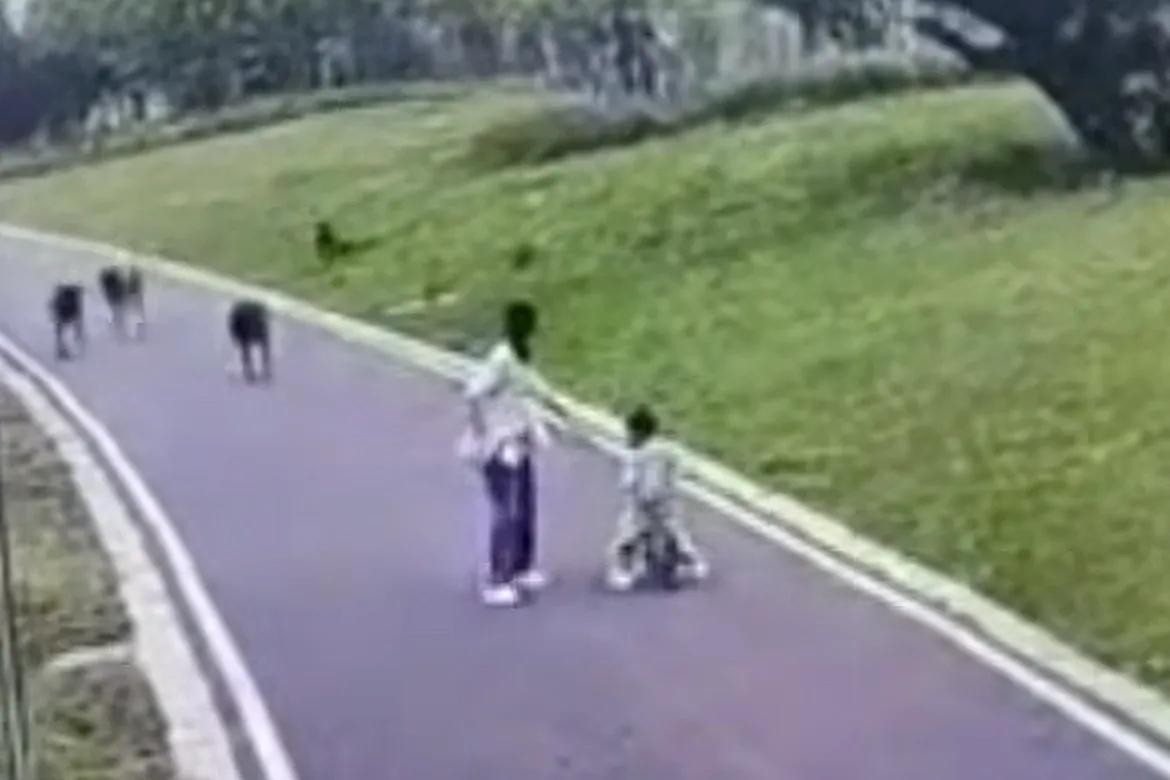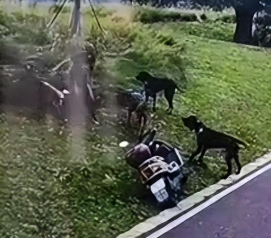 这几只狗十分鸡贼,似乎察觉到了陈女士的恐惧,短暂的试探性靠近后,随即火速扑向母女俩,伸出了骇人的獠牙。