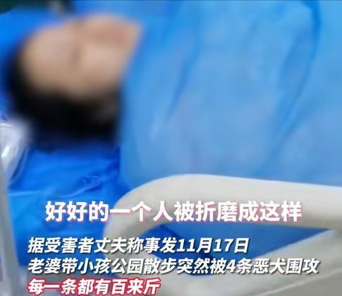 12月18日,江西赣州某网友曝光了一条监控,有母女俩在公园里,被四条没拴绳的烈性犬追赶、撕咬,场面十分惨烈。