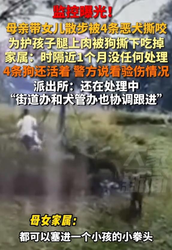 但是,四只恶犬的血性已经被唤醒,依然不愿意放弃到嘴的猎物,有一两只瞅准时机又向陈女士母女扑去。