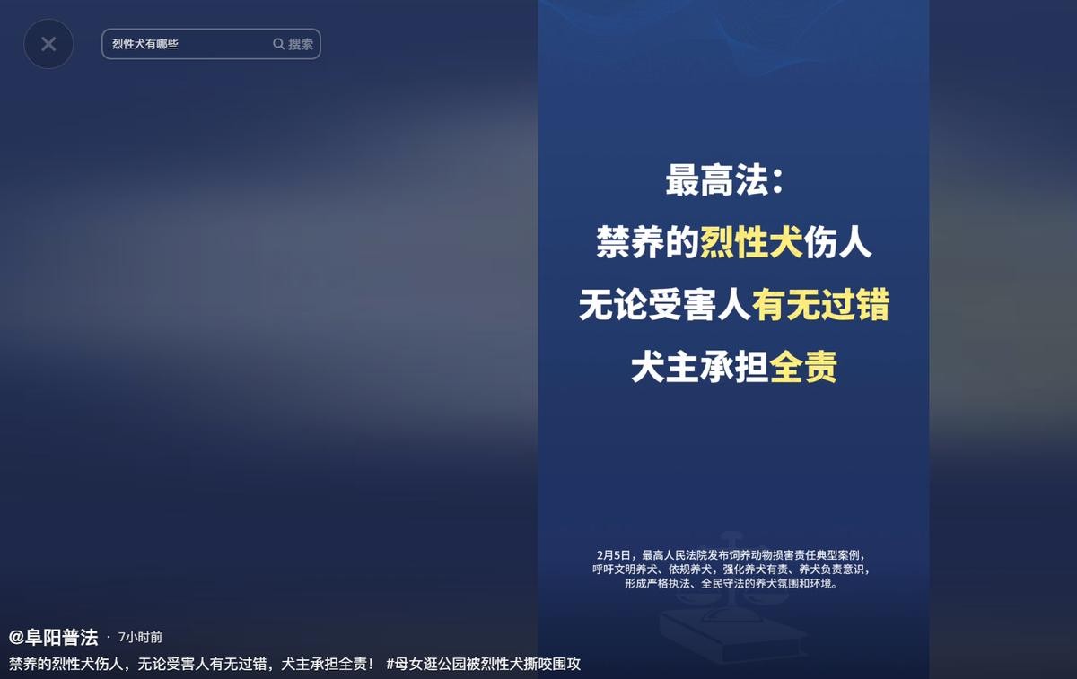 【3】阜阳普法,“禁养的烈性犬伤人,无论受害人有无过错,犬主人承担全责”.