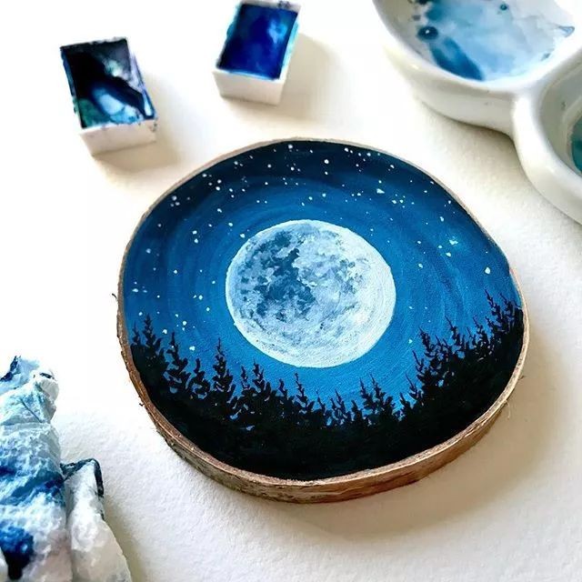 也喜欢在树桩片上作画别有一番趣味