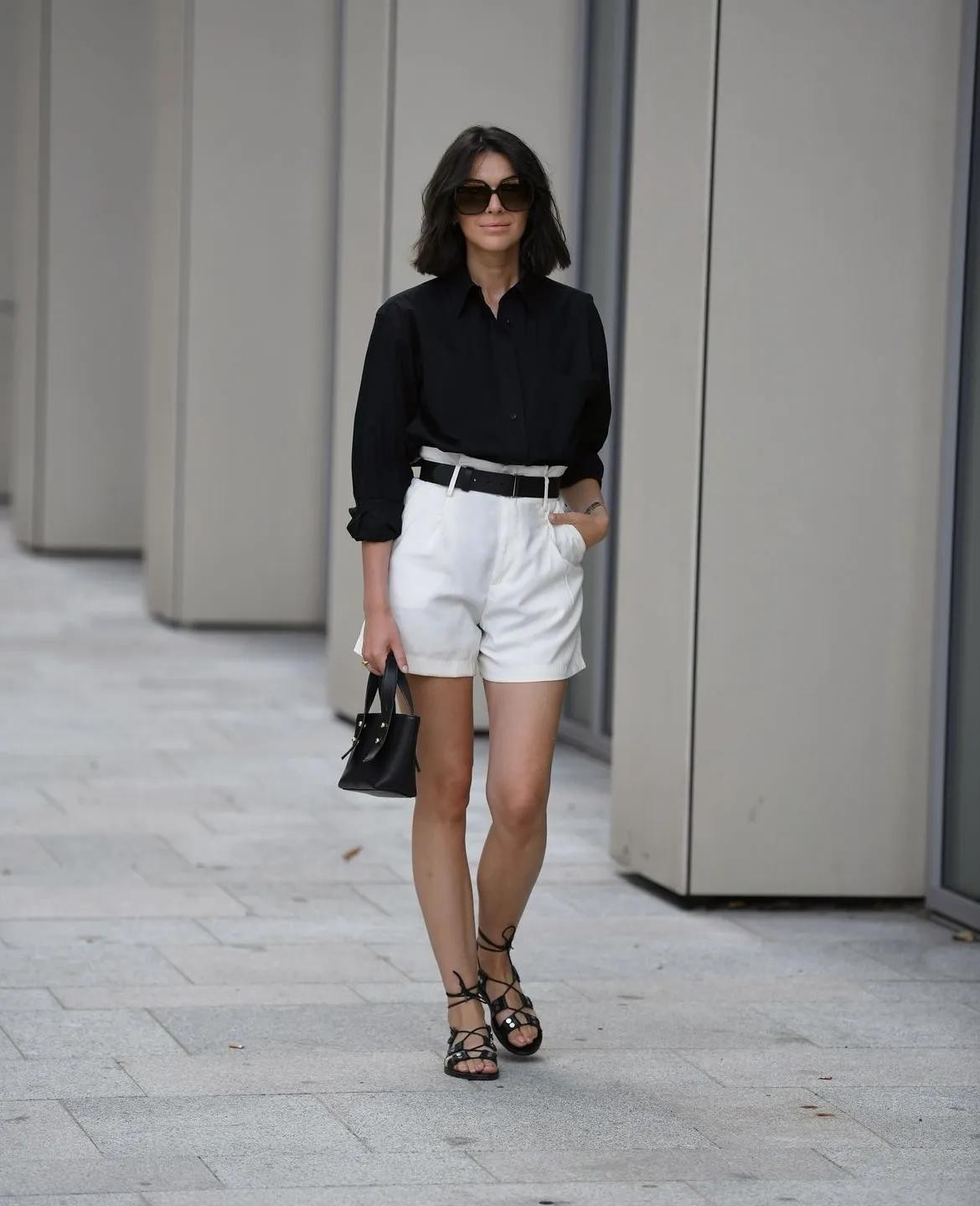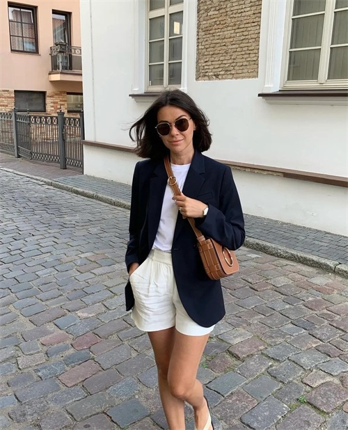经典的小黑西装+有型白色西装短裤,剪裁合身还很有职业感,属于夏日职场人的气场,轻松营造。
