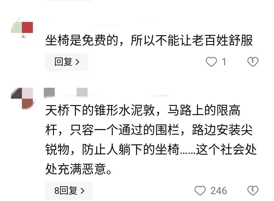 这些座椅是在2017到2019年间搞出来的,总共103个。大家都在吐槽这设计反人性化,政府那边的回应也是让人无奈,说什么“暂时无改建工程计划”,就是明摆着不打算改。公众当然不乐意了,毕竟这座椅坐着都不舒服。