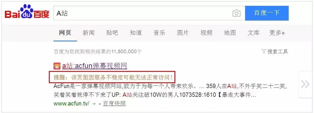 2月2日,悬在它头上的达摩克利斯之剑终于落下:A站网站无法访问,app上一片空白。就连百度搜出来的页面也显示“服务器不稳定,无法正常访问”。