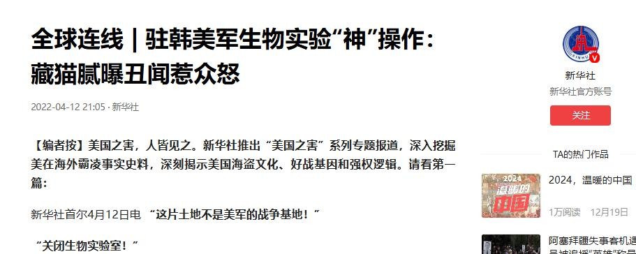 近年来,全球各地都陷入了一场生物安全问题中,不仅中国爆发病毒外,其他国家也未能幸免,而这些问题的源头似乎都指向了一个超级大国——美国。