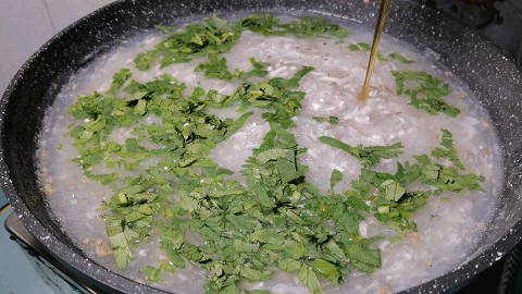 7.最后撒入香菜末,再淋入少许香油,这样一份牛肉羹即可完成。