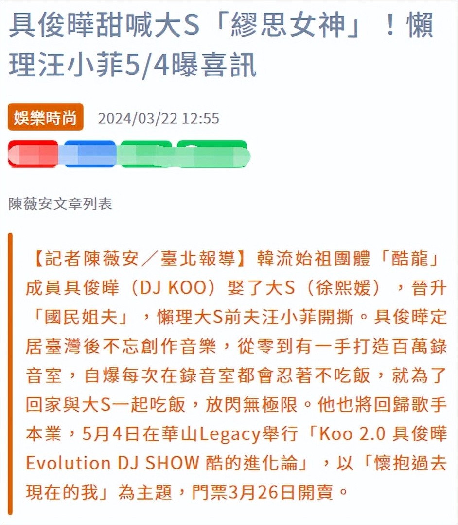 具俊晔懒理骂声高调示爱大S,宣布举办演出,为大S撑场面
