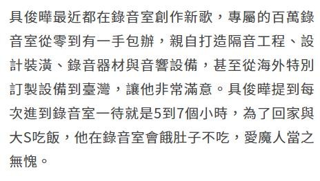 据悉,具俊晔为了这次演出,特意亲手打造了录音室,花费高达百万台币。录音室的设备全部从海外定制,确保音质达到最佳效果。