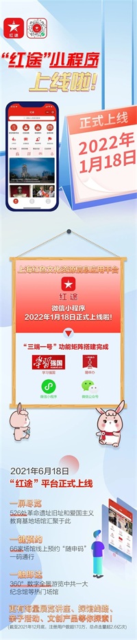 随着小程序的上线,“红途”平台2.0已经启动,定位数字赋能,创新红色文化传承弘扬载体;聚焦便民利民,提供高能级红色文化服务;汇聚各方力量,擦亮上海红色文化品牌。