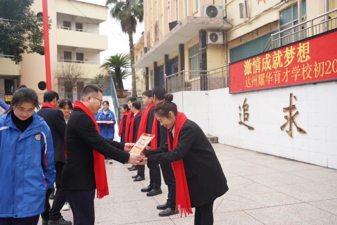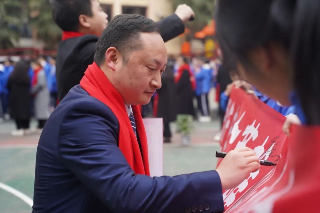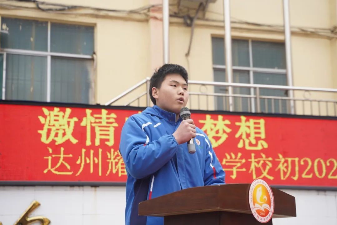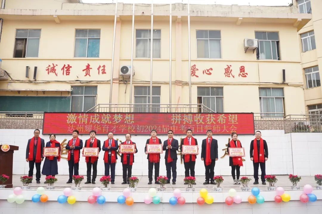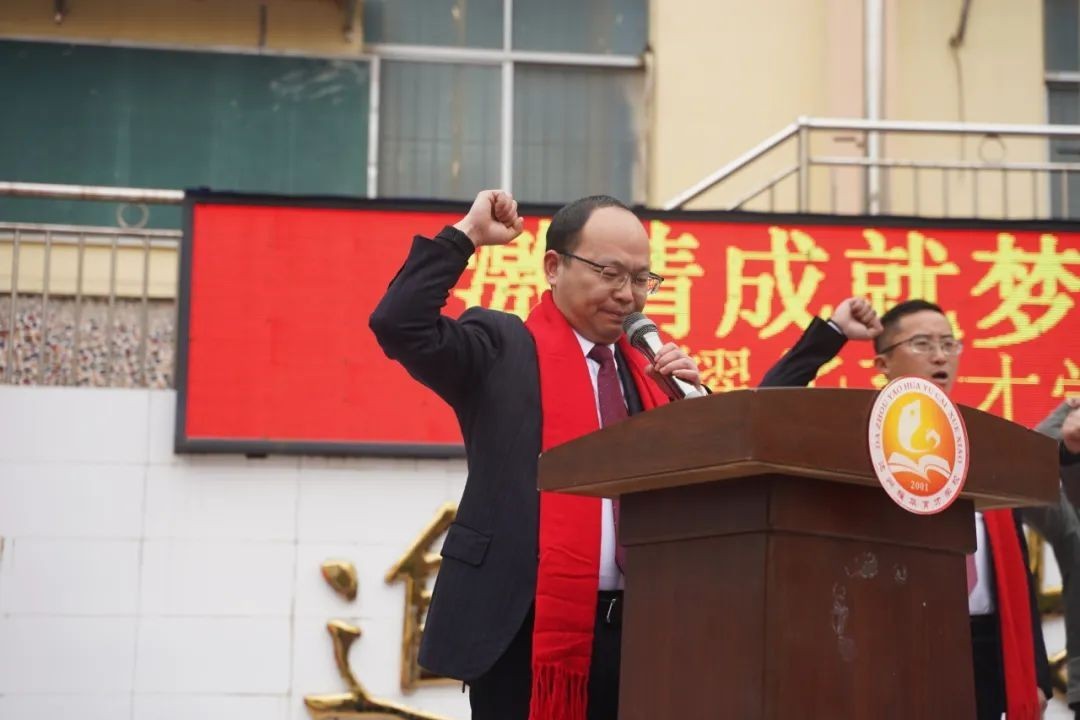 大家好! 冰雪消融,化作千顷碧波;书声琅琅,铺就锦绣前程。在这个特殊的日子里,我们齐集一堂,共同见证一个重要而庄严的时刻——百日誓师。首先,我代表达州市高新区耀华育才学校董事会,向辛勤耕耘的老师们表示衷心的感谢,向孜孜以求的同学们表示亲切的慰问。