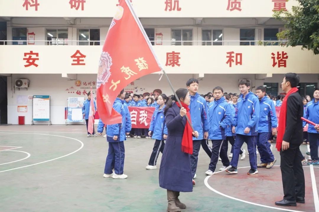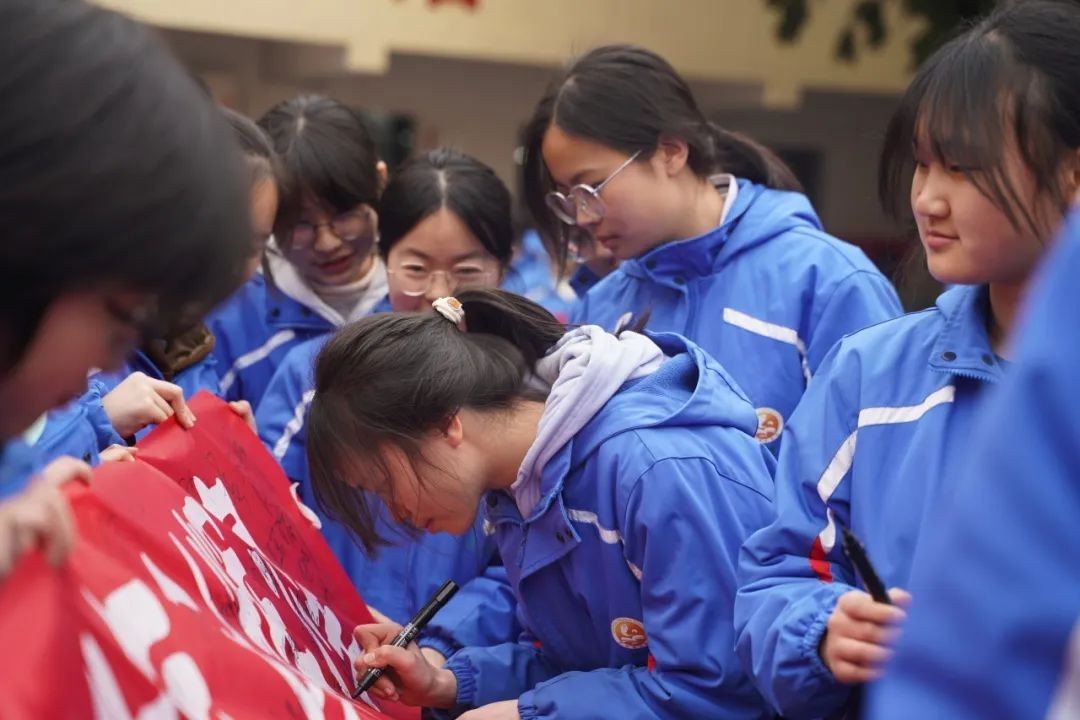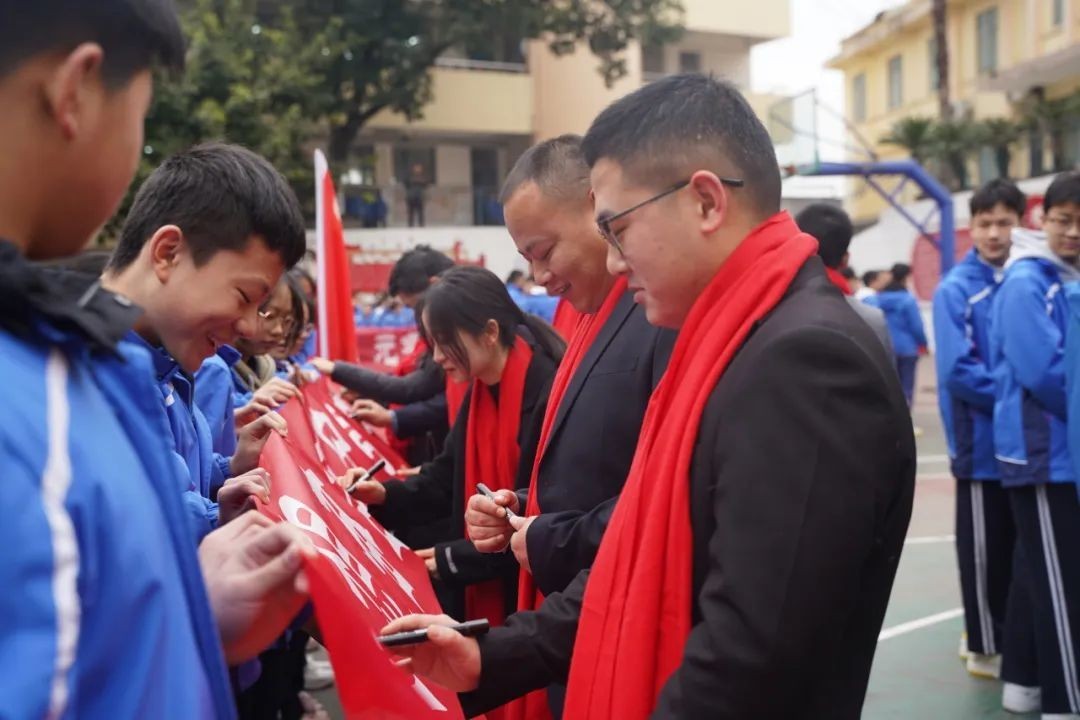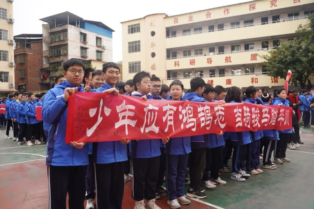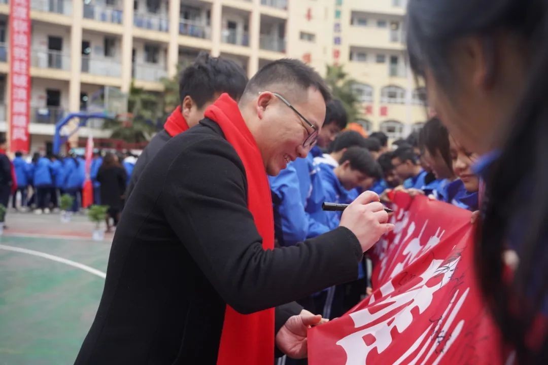 “无所畏惧,傲视群雄;天生我材,必定有用;奋斗今日,无憾此生;坚持百天,铸就辉煌”,初三学生陈红阳带领全体同学进行宣誓。铮铮誓言,铿锵有力,一字一句,皆是同学们砥砺前行、铸就辉煌的决心。