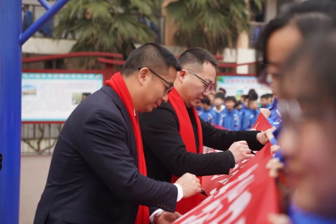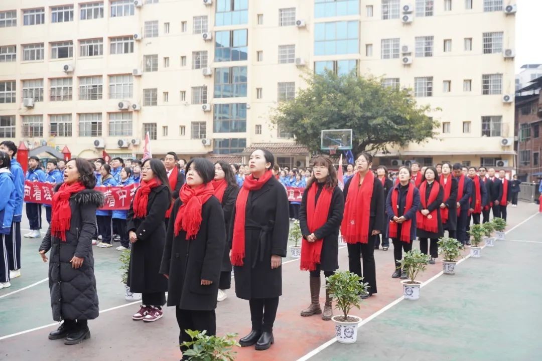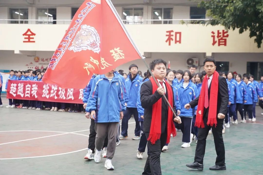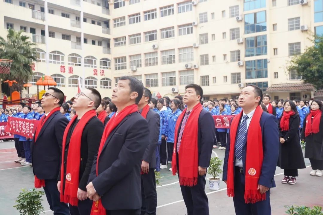 誓师大会在庄严肃穆的升国旗奏唱国歌中拉开帷幕。全体师生怀着诚挚的敬意,齐声高唱国歌。每一次国旗的升起,都是一次拼搏精神的传承,激励着全体师生携手同行,奔赴未来。