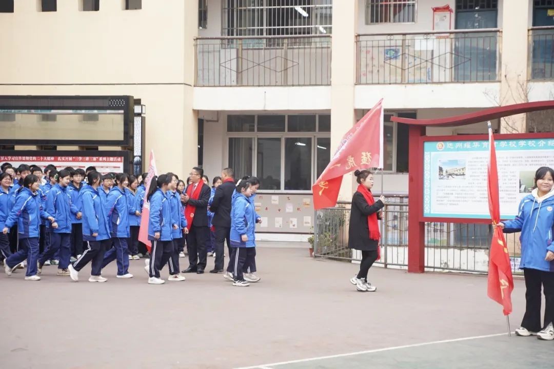 “草树知春不久归,百般红紫斗芳菲”,聆听着青春的脚步,伴随着青春激昂的旋律,初三学子昂首挺胸,两路纵队在班主任的带领下从尚行楼有序入场。