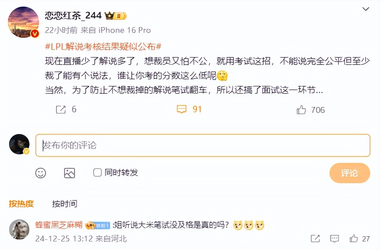 也就是说这次考核只是一个形式,最主要的目的就是裁掉一些解说。把想保留的解说全部保留下来,不想保留的解说全部裁掉。虽然有些残忍,但是这就是现实。说白了,被裁掉的这些解说往往都是一些不知名的解说。对于他们来说,可能确实有点不太公平,但现在直播少了,岗位就那么多,解说人员太多,必须要裁掉一些。
