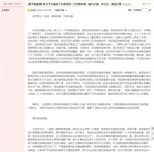 近日,口水楼市网友“上升双子”发帖对九堡北的三个楼盘作出一番锐评,他用了几个字表达:既有惊喜,又有失望。