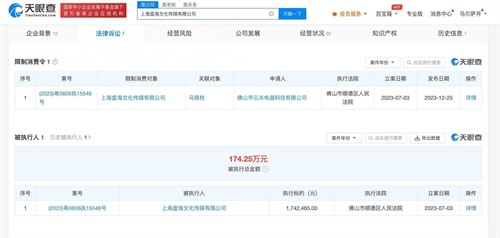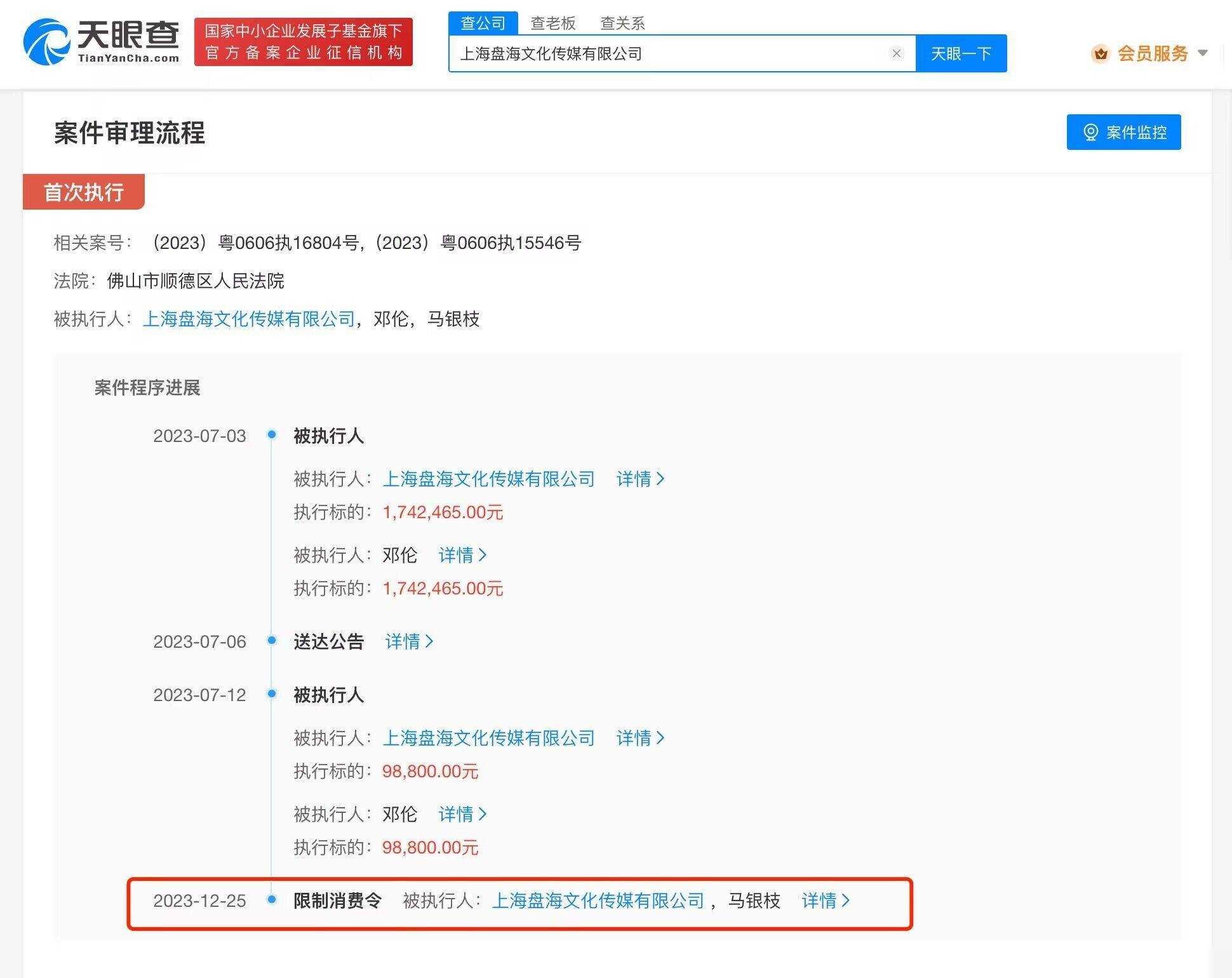 近日,一则关于邓伦合作商上海盘海文化传媒有限公司被限制高消费的消息引起了广泛关注。据天眼查App显示,该公司及法定代表人因未按执行通知书指定的期间履行给付义务,而被实施限制高消费的措施。此前,该公司与邓伦之间的服务合同纠纷已被强制执行超百万。