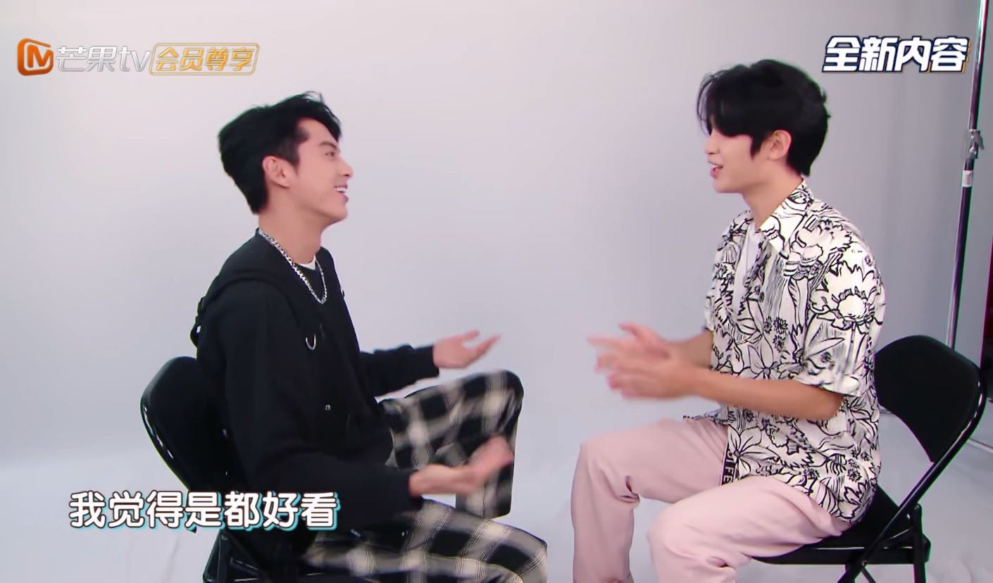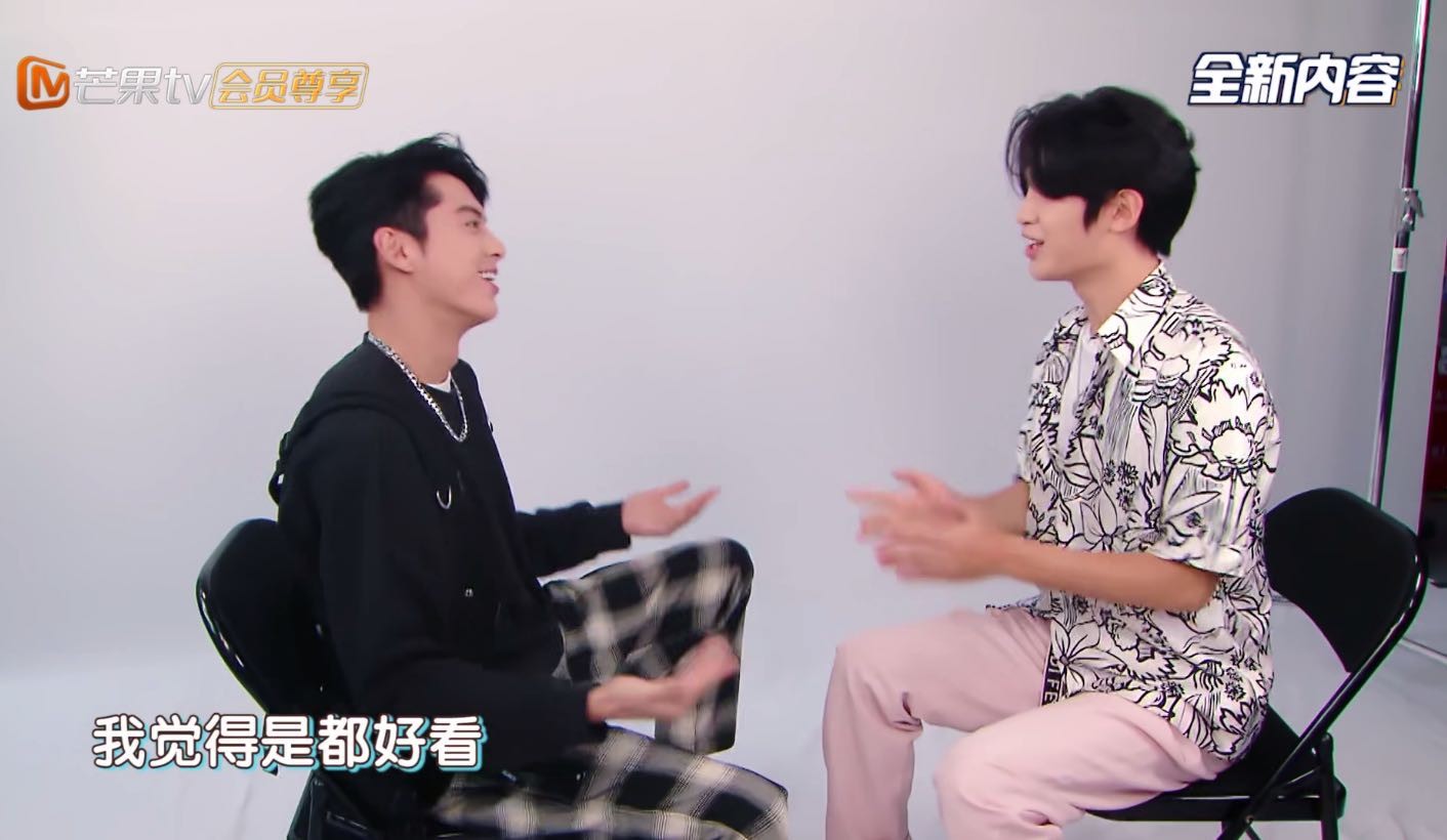 从王鹤棣和黄明昊坐在一样高的椅子上,看起来两人也差不多高,不过黄明昊坐得比较直比较挺,所以会比王鹤棣高出二三厘米的样子。