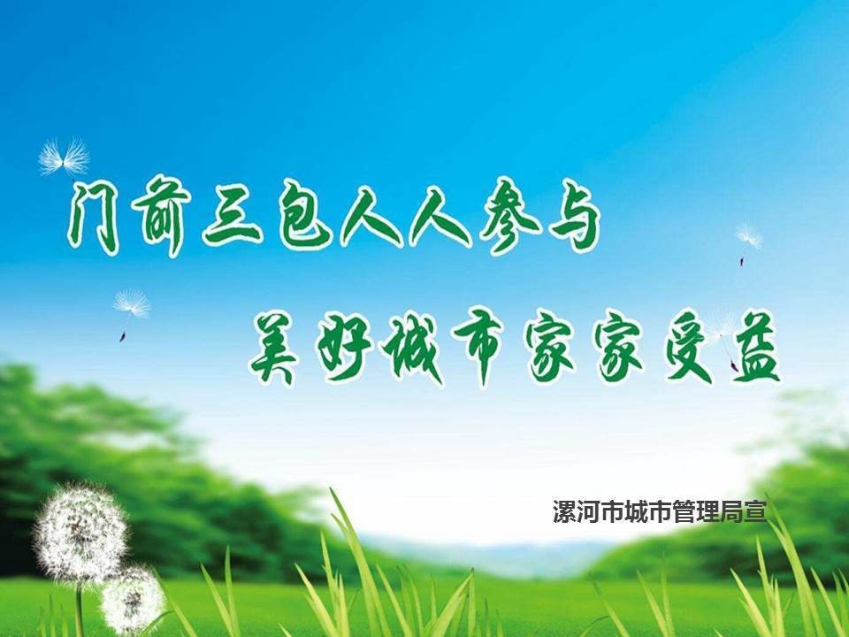 “门前三包”是指"临路(街)所有的单位、门店、住户将担负的市容环境责任三包。主要指包卫生、包绿化、包秩序。