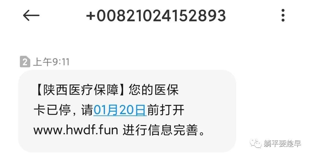 不法分子用同样的套路以“陕西医疗保障”名义短信诈骗
