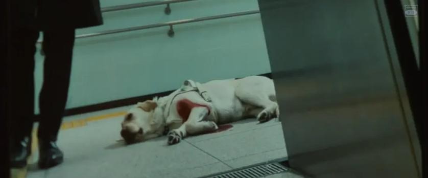 另外因车祸而失明的夏目,她过着三年封闭的生活,只有导盲犬相伴,而在主人遇险时,会奋不顾身得保护她,使得这成为全片最动人的高潮情节。