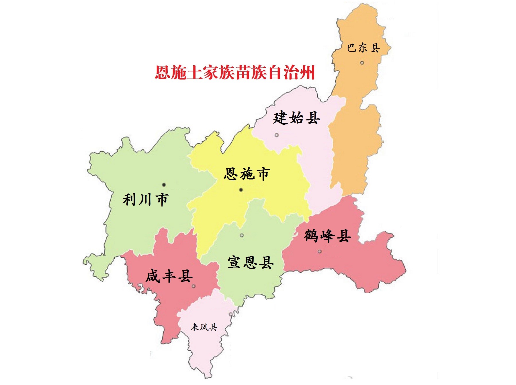 恩施土家族苗族自治州,简称恩施州,州人民政府驻恩施市。位于湖北省西南部,地处鄂湘渝三省(市)交汇处,东连神农架林区、宜昌市,南与湖南省湘西州接壤,西、北连重庆市交界。