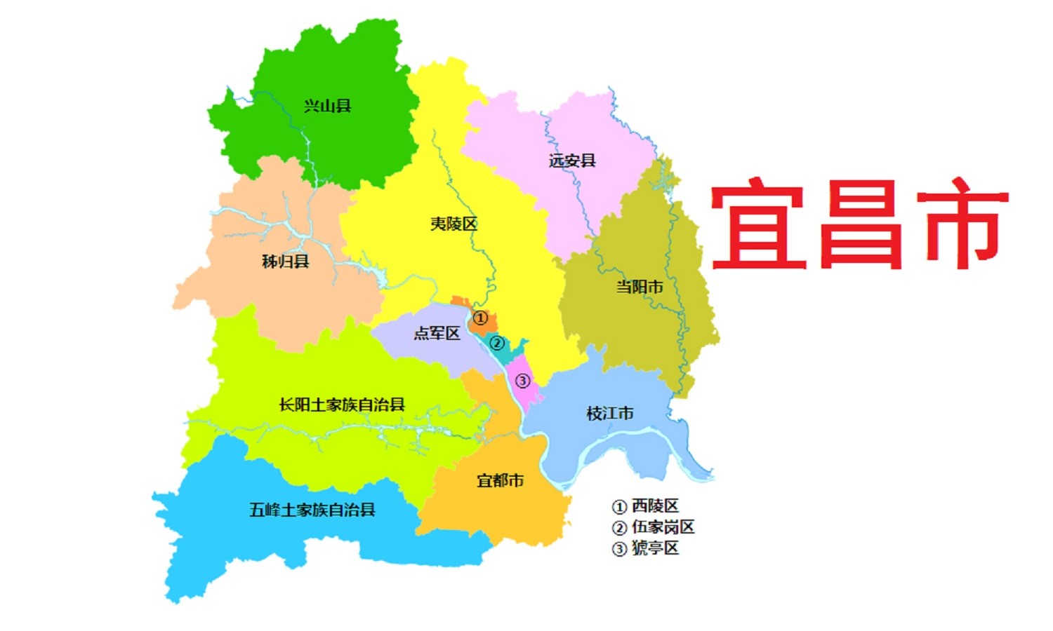 宜昌市,市政府驻西陵区。地处湖北西南部,东与荆州市、荆门市毗邻,南与湖南省接壤,西与恩施土家族苗族自治州相连,北与神农架林区、襄阳市交界。