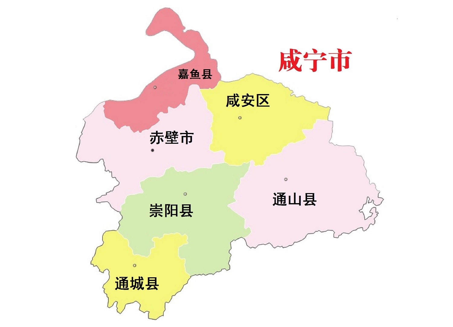 全市总面积10033平方千米,辖1个区(咸安区)、4个县(嘉鱼县、通城县、崇阳县、通山县),代管1个县级市(赤壁市)。截至2022年,全市户籍人口303.61万人。