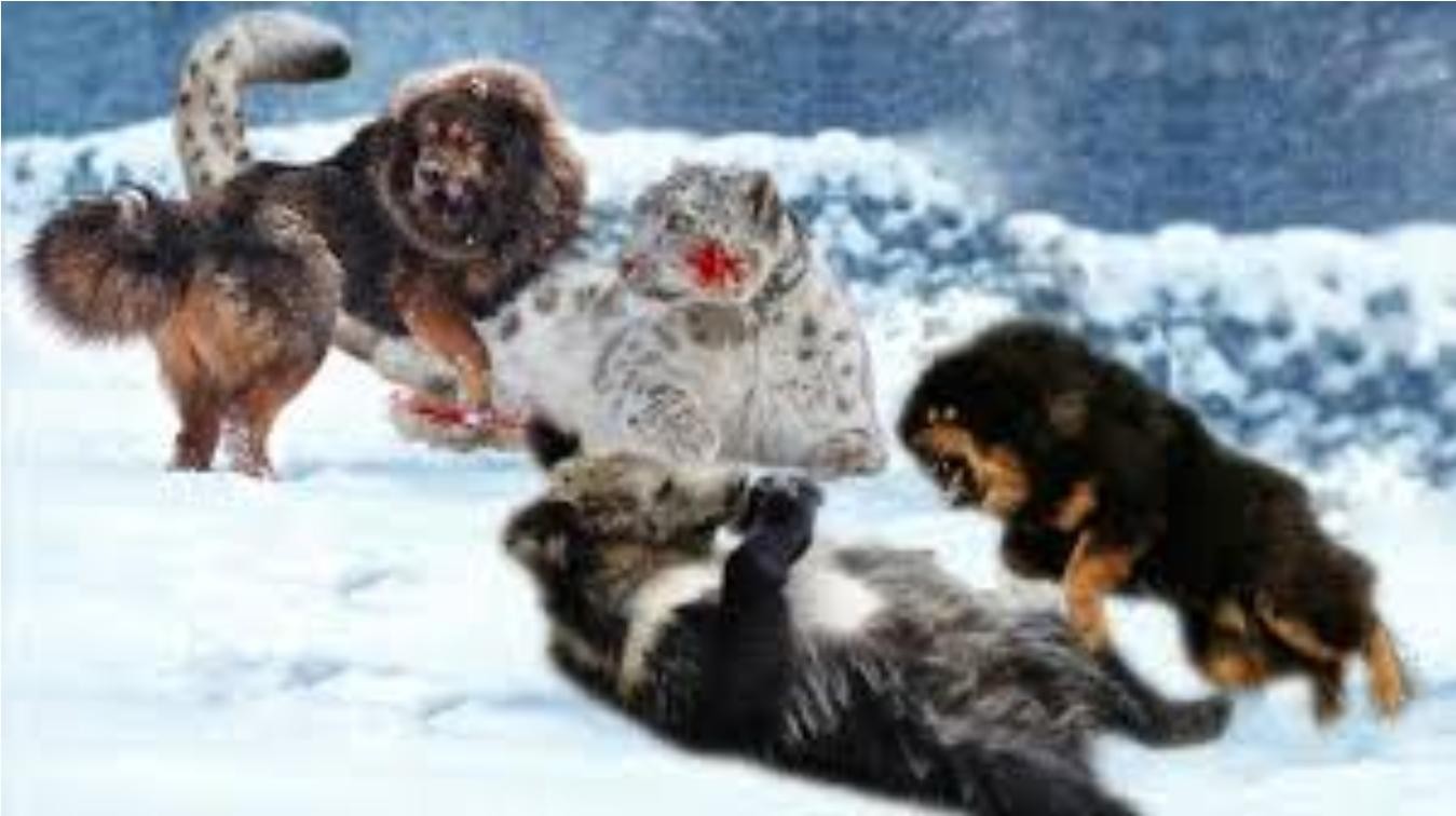 据相关媒体报道,在西藏的很多公路边和平地山头之间会经常见到成群结队出来野外觅食的藏獒群的画面。甚至在2016年的时候,有人亲自拍摄到一群藏獒在配合默契的情况下追捕了一只雪豹当美食,并且还成功逼退了棕熊。的确单个的藏獒正面攻击并不是雪豹和棕熊的对手,但是成群结队的藏獒在雪域高原上是其他一切生物惧怕的对象,绝对可以称得上高原新霸主。