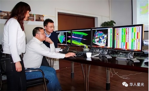 黄大年(左二)和团队成员在极寒天气下进行无人机试飞