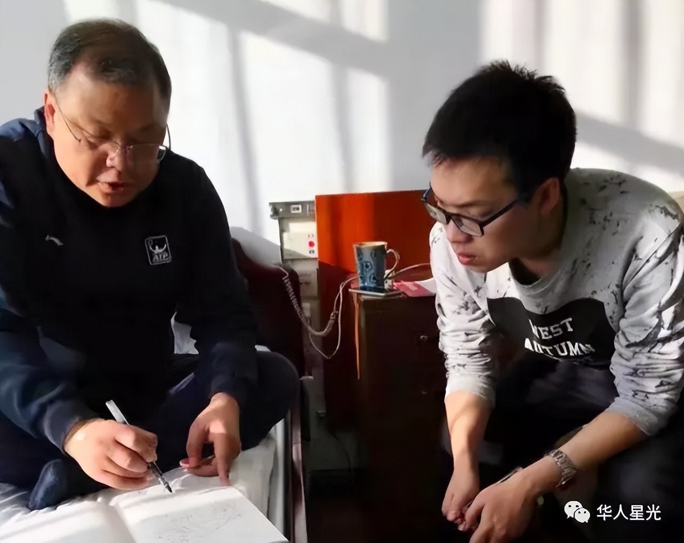 黄大年在病房里给王泰涵讲课。王泰涵本想着,等老师出了院,就把这张照片送给他,但黄大年,却永远也没有机会看到这张照片了……
