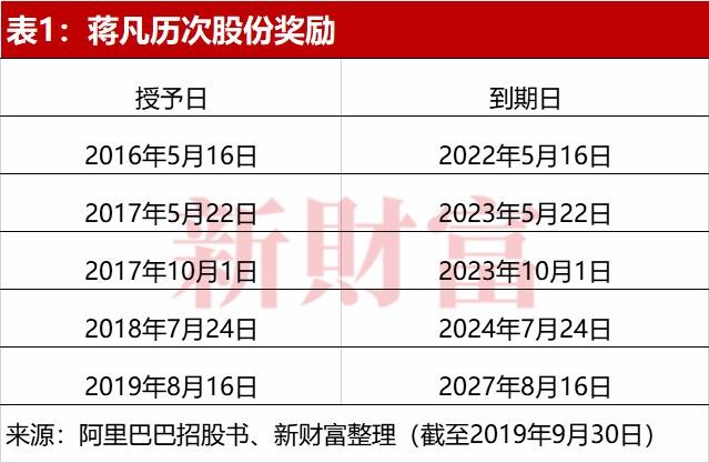 根据阿里巴巴2019年香港上市招股书,截至2019年9月底,蒋凡共获得5次限制性股份单位,其中,2016年被授予1次,2017年两次,2018年1次,2019年1次,详细数量未公布(表1)。