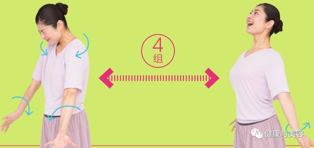在手臂结合“hihi”的呼吸上,注意有节奏地从手臂根部扭动,这样能有效作用于小臂和肱三头肌,甩掉小臂“水袖。”