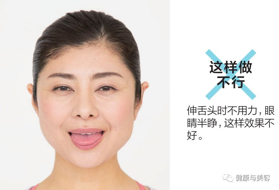 伸舌头时要从根部用力伸出是最重要的,间间田女士说 :“最好是在镜子里能看到舌头背面像三角形。”