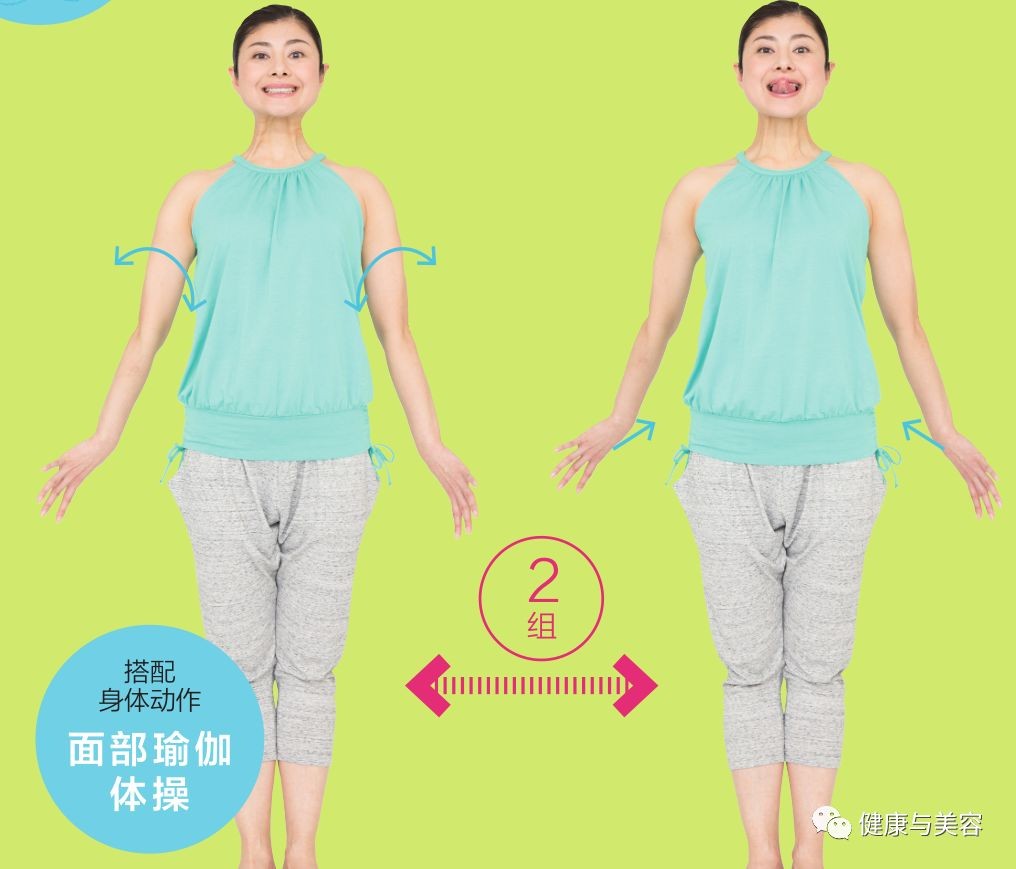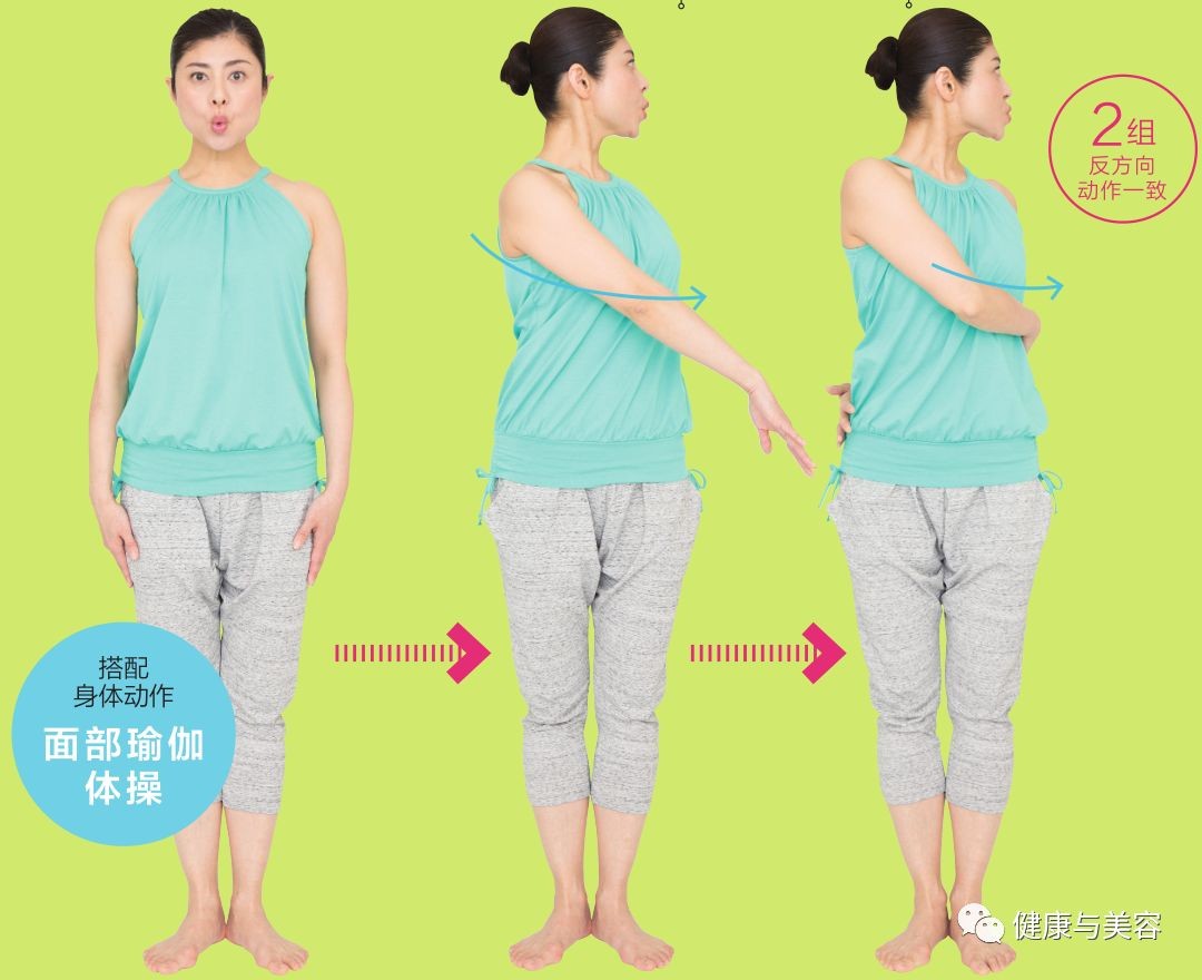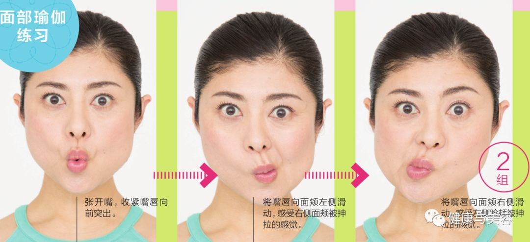 像怪样假面具一样的嘴部状态下,滑动嘴唇,可以锻炼口轮匝肌和颊肌,消除嘴角到下巴的下垂部分,也就是俗称的斗牛犬轮廓线,这就是面部瑜伽。另外,配合面部瑜伽动作,扭动腰部,可以激活腰线,收紧侧腹部。