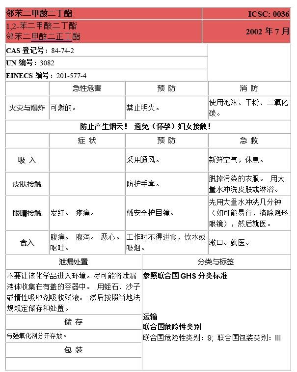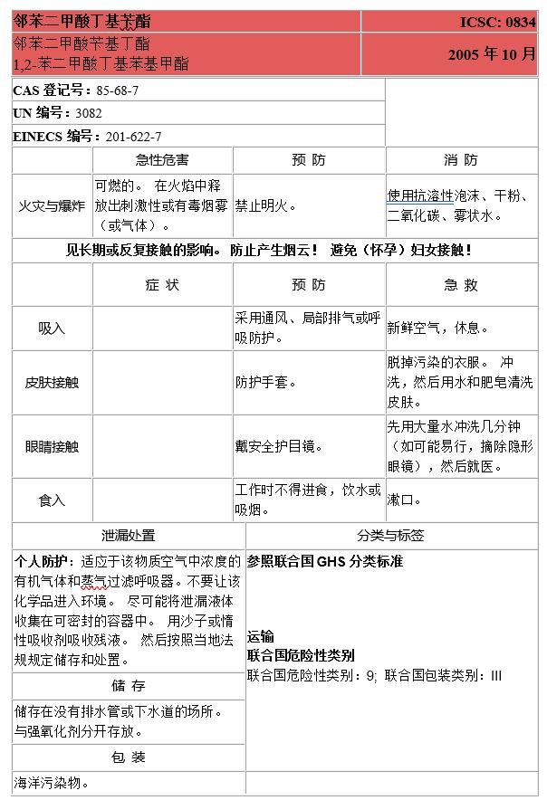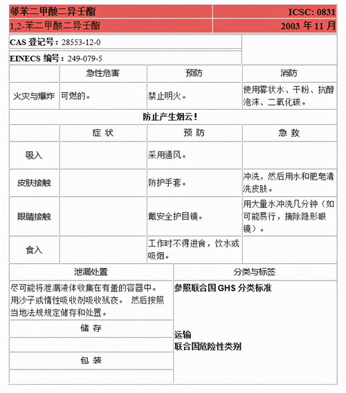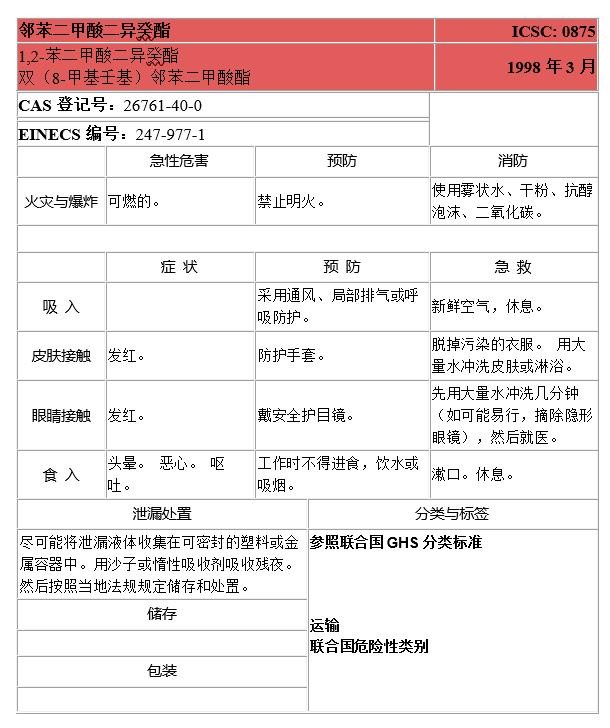 9、五种邻苯二甲酸酯的国际化学品安全卡信息