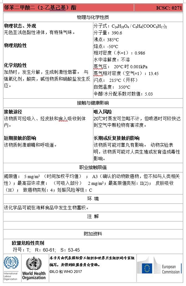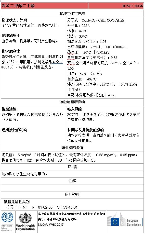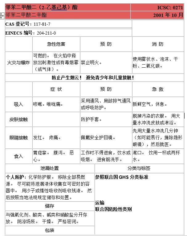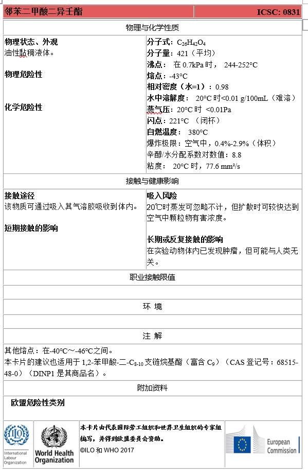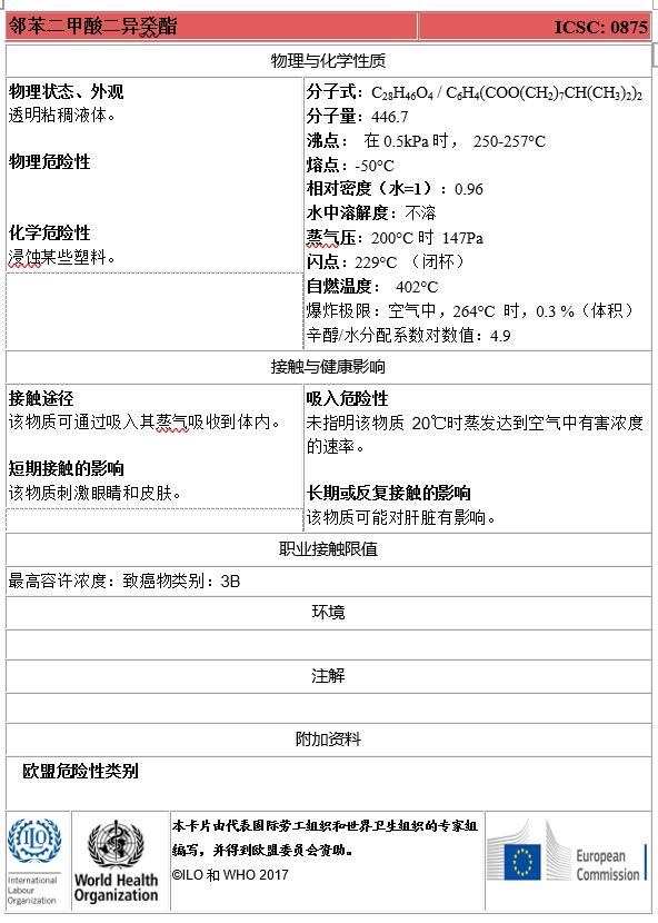 五种典型邻苯二甲酸酯类的国际化学品安全卡信息,供各界读者研究参考。